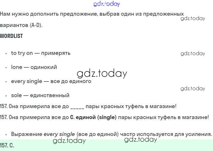 На страницах сайта gdz.today вы найдете учебный и вспомогательный материал, направленный на улучшения знаний школьной программы. ГДЗ - онлайн мир знаний B Решение. Further practice section 157 Рабочей тетради по Английскому языку для 10 класса Баранова, Дули Углубленный уровень Просвещение Starlight 2021