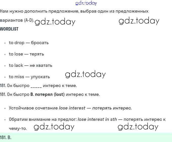 На страницах сайта gdz.today вы найдете учебный и вспомогательный материал, направленный на улучшения знаний школьной программы. ГДЗ - онлайн мир знаний B Решение. Further practice section 181 Рабочей тетради по Английскому языку для 10 класса Баранова, Дули Углубленный уровень Просвещение Starlight 2021