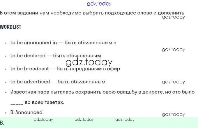 На страницах сайта gdz.today вы найдете учебный и вспомогательный материал, направленный на улучшения знаний школьной программы. ГДЗ - онлайн мир знаний B Решение. Further practice section 5 Рабочей тетради по Английскому языку для 10 класса Баранова, Дули Углубленный уровень Просвещение Starlight 2021