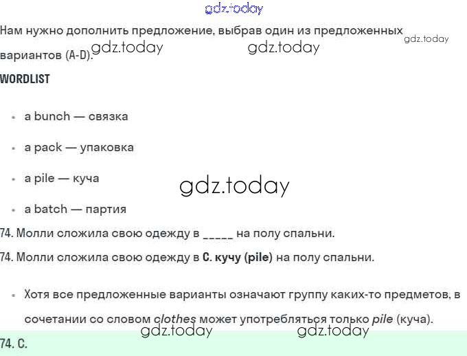 На страницах сайта gdz.today вы найдете учебный и вспомогательный материал, направленный на улучшения знаний школьной программы. ГДЗ - онлайн мир знаний B Решение. Further practice section 74 Рабочей тетради по Английскому языку для 10 класса Баранова, Дули Углубленный уровень Просвещение Starlight 2021