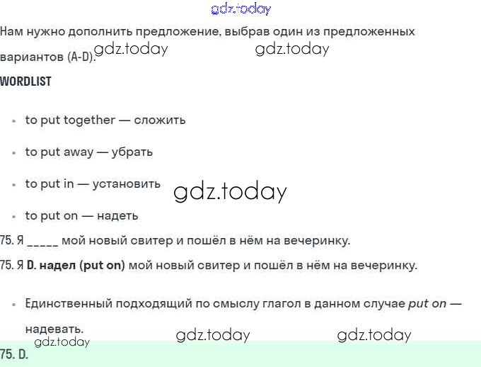 На страницах сайта gdz.today вы найдете учебный и вспомогательный материал, направленный на улучшения знаний школьной программы. ГДЗ - онлайн мир знаний B Решение. Further practice section 75 Рабочей тетради по Английскому языку для 10 класса Баранова, Дули Углубленный уровень Просвещение Starlight 2021