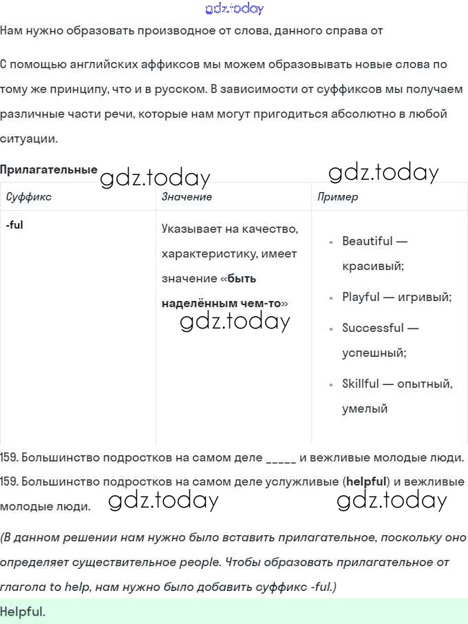 На страницах сайта gdz.today вы найдете учебный и вспомогательный материал, направленный на улучшения знаний школьной программы. ГДЗ - онлайн мир знаний I Решение. Further practice section 159 Рабочей тетради по Английскому языку для 10 класса Баранова, Дули Углубленный уровень Просвещение Starlight 2021