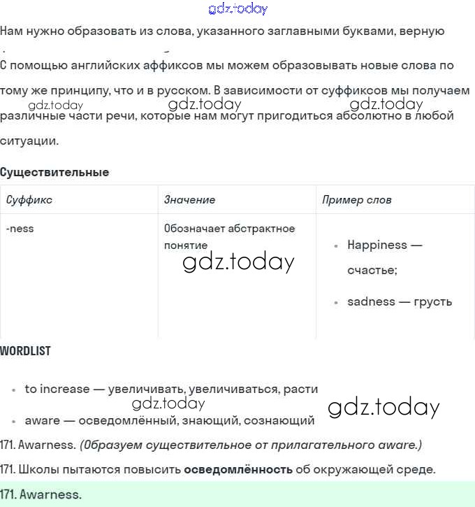 На страницах сайта gdz.today вы найдете учебный и вспомогательный материал, направленный на улучшения знаний школьной программы. ГДЗ - онлайн мир знаний I Решение. Further practice section 171 Рабочей тетради по Английскому языку для 10 класса Баранова, Дули Углубленный уровень Просвещение Starlight 2021
