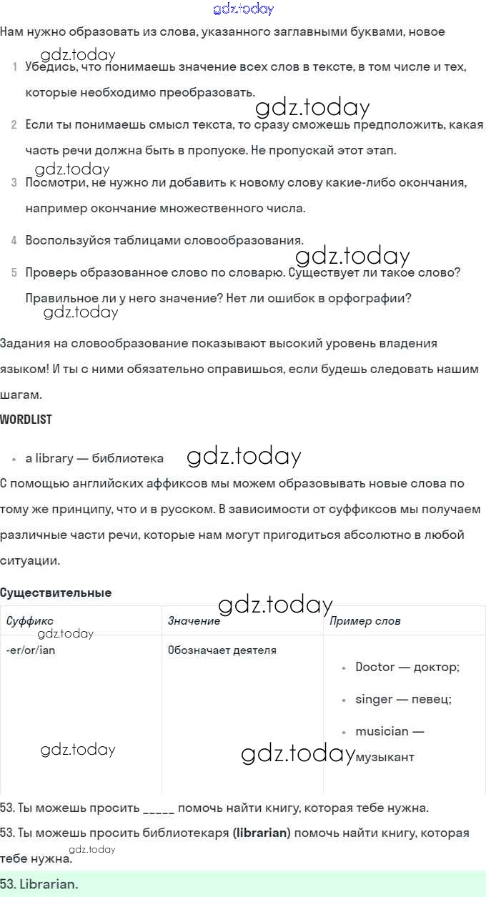 На страницах сайта gdz.today вы найдете учебный и вспомогательный материал, направленный на улучшения знаний школьной программы. ГДЗ - онлайн мир знаний I Решение. Further practice section 53 Рабочей тетради по Английскому языку для 10 класса Баранова, Дули Углубленный уровень Просвещение Starlight 2021