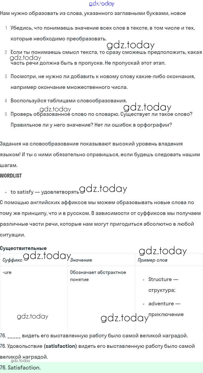 На страницах сайта gdz.today вы найдете учебный и вспомогательный материал, направленный на улучшения знаний школьной программы. ГДЗ - онлайн мир знаний I Решение. Further practice section 76 Рабочей тетради по Английскому языку для 10 класса Баранова, Дули Углубленный уровень Просвещение Starlight 2021