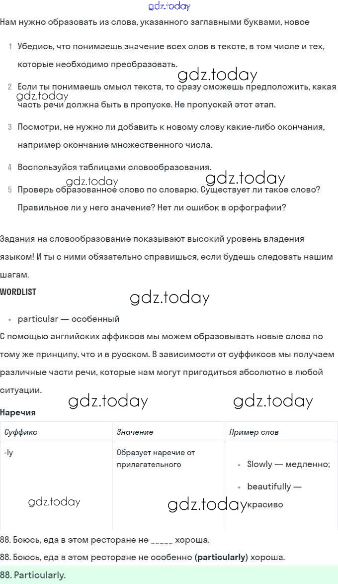 На страницах сайта gdz.today вы найдете учебный и вспомогательный материал, направленный на улучшения знаний школьной программы. ГДЗ - онлайн мир знаний I Решение. Further practice section 88 Рабочей тетради по Английскому языку для 10 класса Баранова, Дули Углубленный уровень Просвещение Starlight 2021