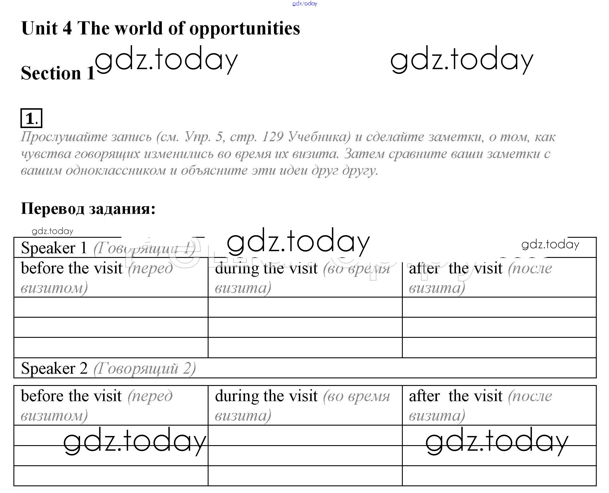 На страницах сайта gdz.today вы найдете учебный и вспомогательный материал, направленный на улучшения знаний школьной программы. ГДЗ - онлайн мир знаний Section 1 Решение к Unit 4. The world of opportunities 1 Рабочей тетради по Английскому языку для 10 класса Биболетова, Бабушис Аст/Астрель Enjoy English 2016