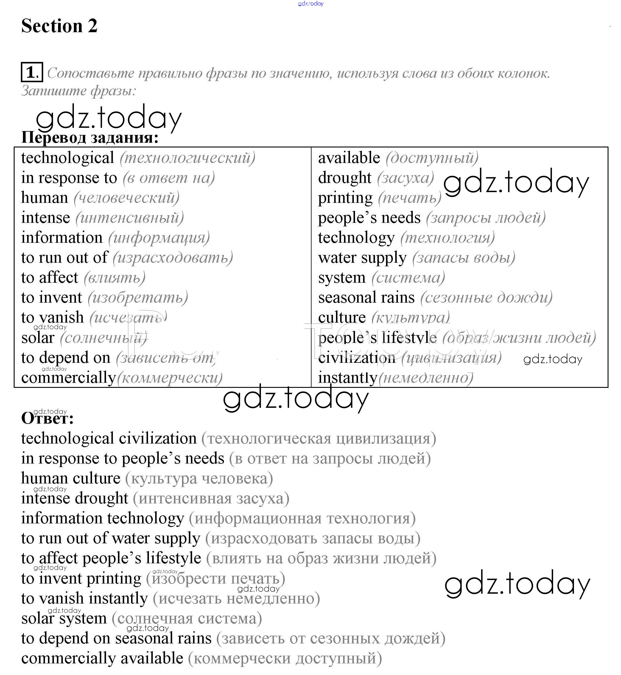 Ответы к Section 2 Решение к Unit 3. Civilisation and progress 1 Рабочей тетради по Английскому языку для 10 класса Биболетова, Бабушис Аст/Астрель Enjoy English 2016