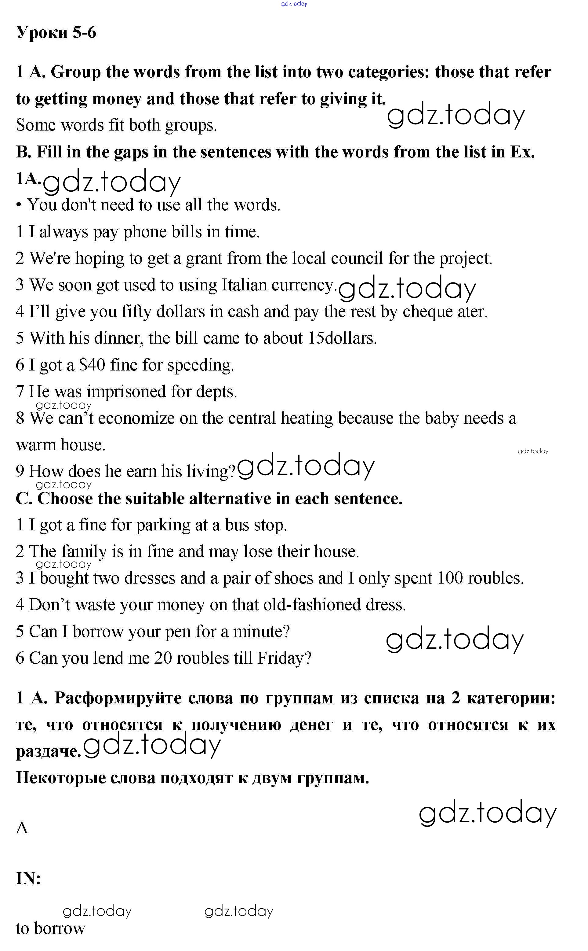 На страницах сайта gdz.today вы найдете учебный и вспомогательный материал, направленный на улучшения знаний школьной программы. ГДЗ - онлайн мир знаний Уроки 5-6 Решение к Unit 4. The root of all evil? 1 Рабочей тетради по Английскому языку для 10 класса Гроза, Дворецкая Титул New Millennium 2013