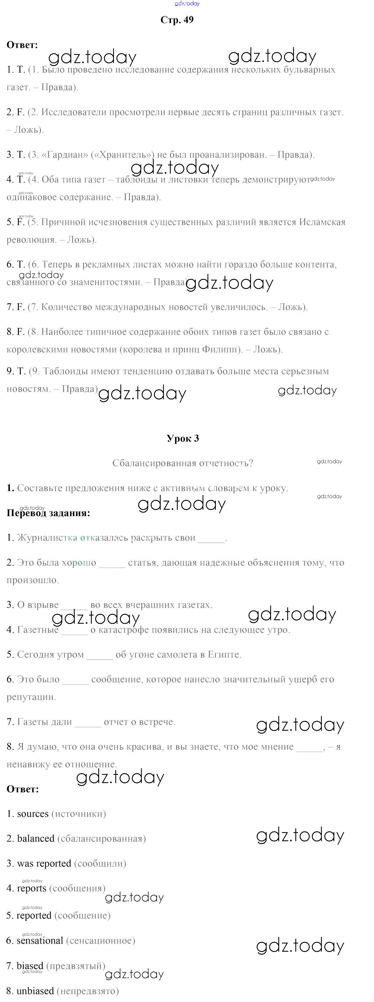 На страницах сайта gdz.today вы найдете учебный и вспомогательный материал, направленный на улучшения знаний школьной программы. ГДЗ - онлайн мир знаний Решение к части 2. Страницы 49 Рабочей тетради по Английскому языку для 10 класса Юхнель, Наумова Аверсэв 2020