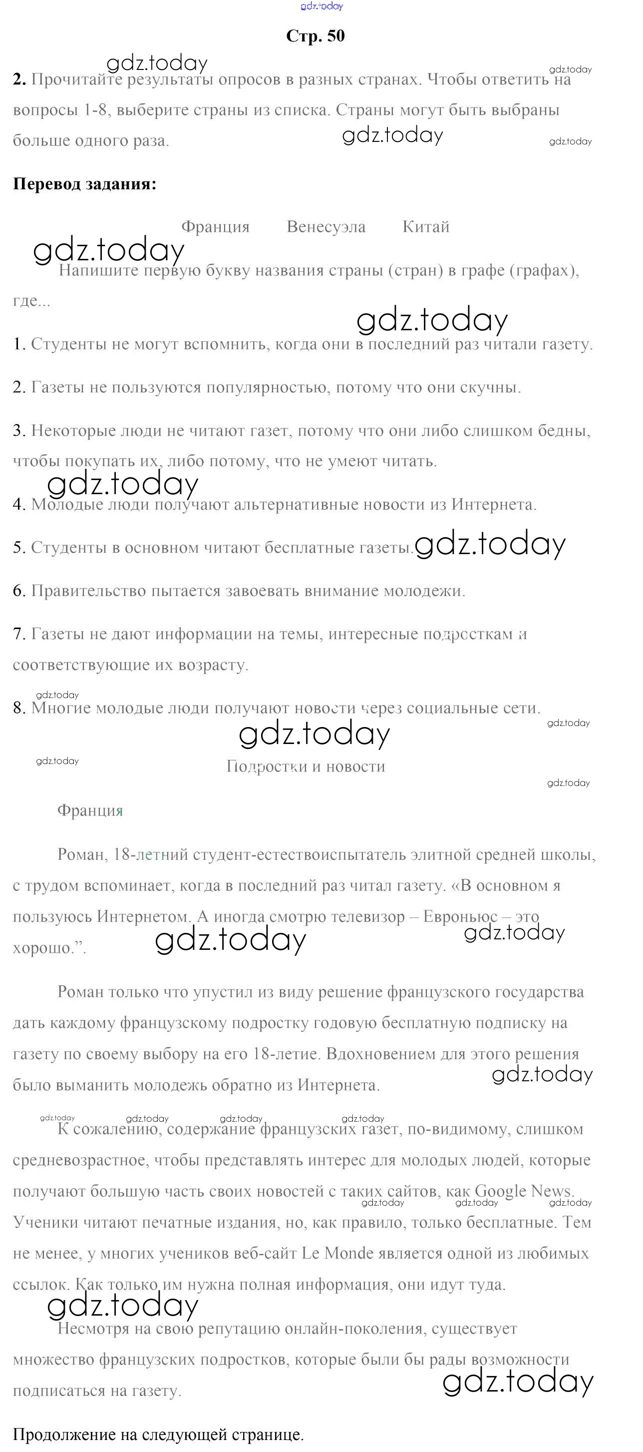 На страницах сайта gdz.today вы найдете учебный и вспомогательный материал, направленный на улучшения знаний школьной программы. ГДЗ - онлайн мир знаний Решение к части 2. Страницы 50 Рабочей тетради по Английскому языку для 10 класса Юхнель, Наумова Аверсэв 2020