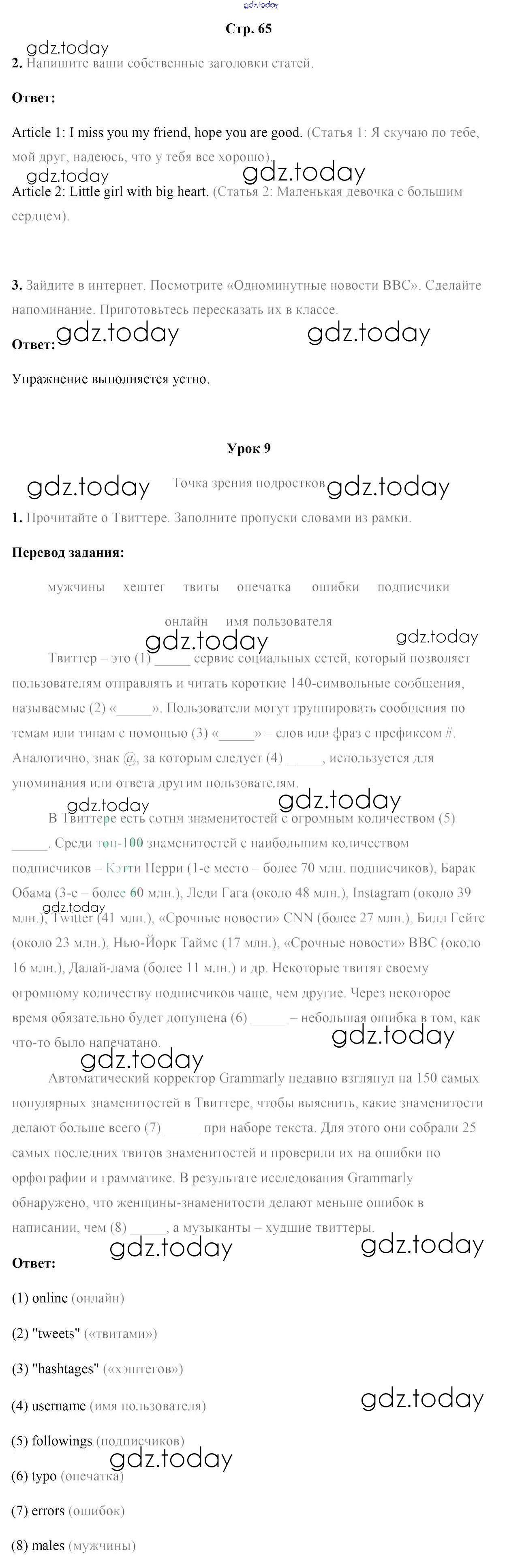На страницах сайта gdz.today вы найдете учебный и вспомогательный материал, направленный на улучшения знаний школьной программы. ГДЗ - онлайн мир знаний Решение к части 2. Страницы 65 Рабочей тетради по Английскому языку для 10 класса Юхнель, Наумова Аверсэв 2020