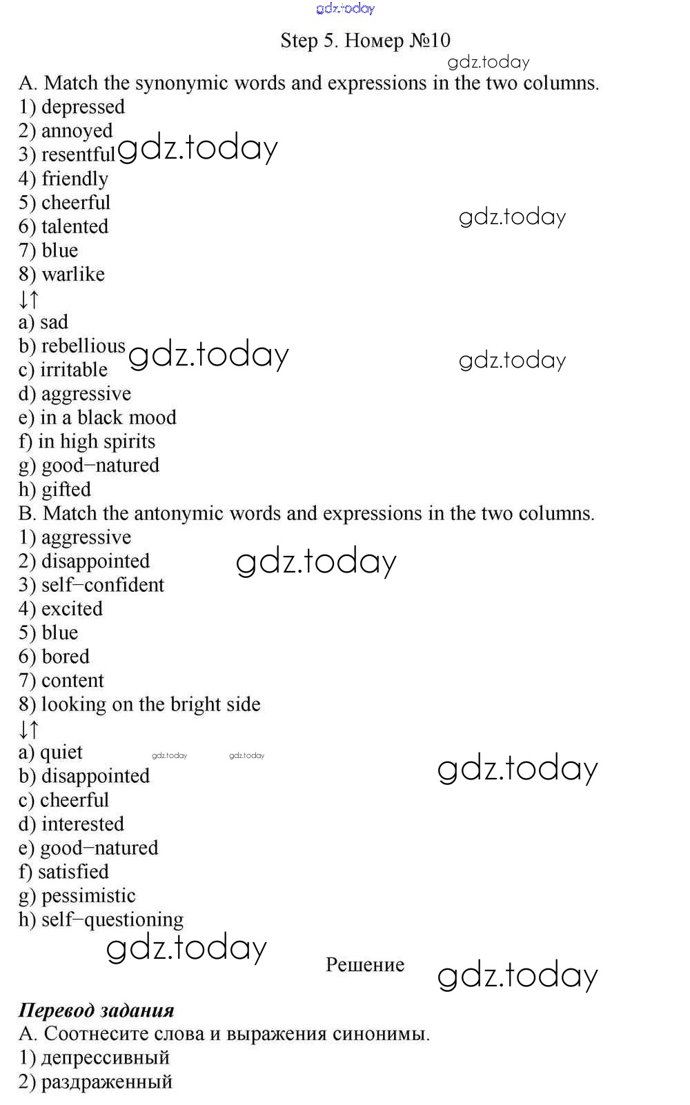 На страницах сайта gdz.today вы найдете учебный и вспомогательный материал, направленный на улучшения знаний школьной программы. ГДЗ - онлайн мир знаний Step 5 Решение к Unit 1. In Harmony with Yourself 10 Учебнику по Английскому языку для 10 класса Афанасьева, Михеева Базовый уровень Дрофа Rainbow 2016