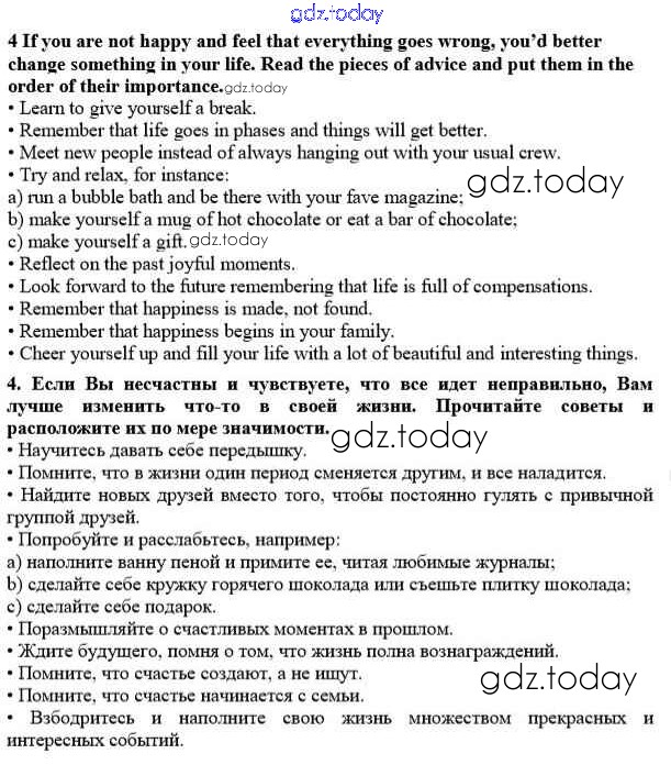 На страницах сайта gdz.today вы найдете учебный и вспомогательный материал, направленный на улучшения знаний школьной программы. ГДЗ - онлайн мир знаний Step 5 Решение к Unit 1. In Harmony with Yourself 4 Учебнику по Английскому языку для 10 класса Афанасьева, Михеева Базовый уровень Дрофа Rainbow 2016