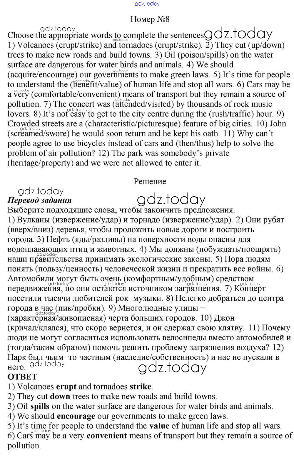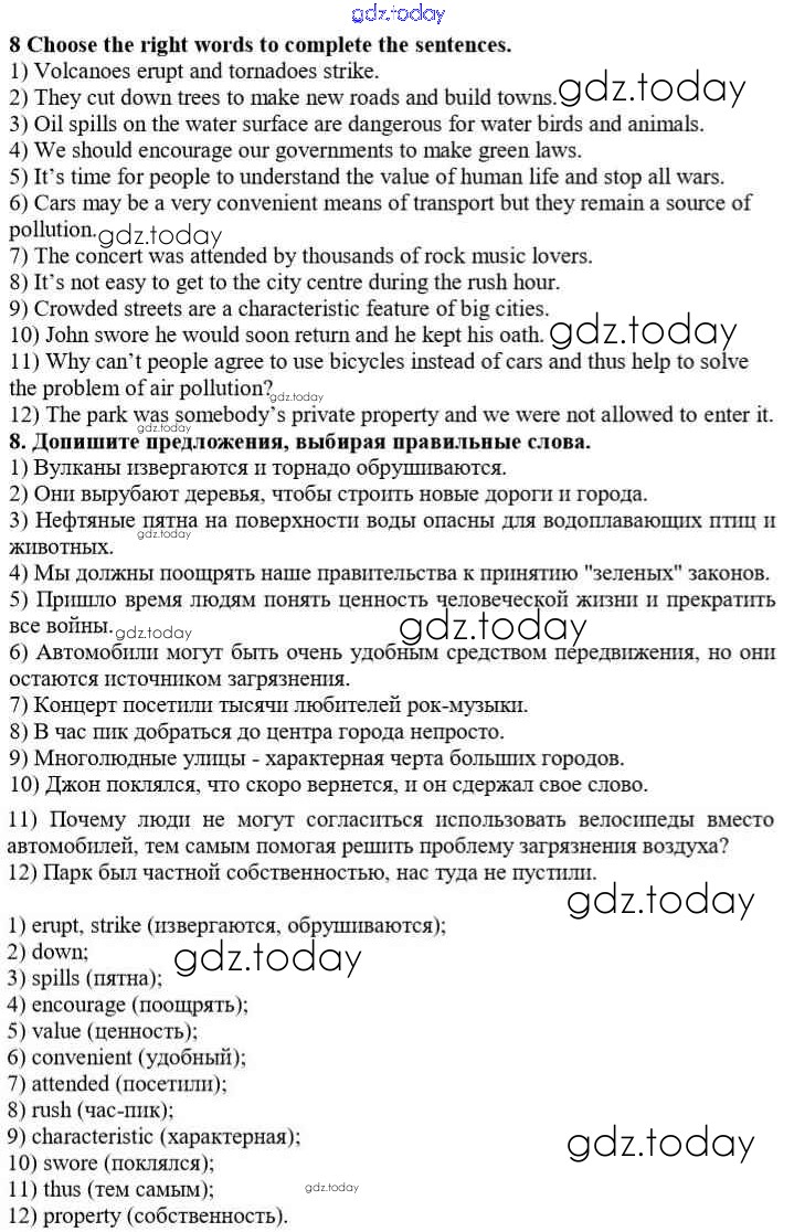 Ответы к Step 11 Решение к Unit 3. In Harmony with Nature 8 Учебнику по Английскому языку для 10 класса Афанасьева, Михеева Базовый уровень Дрофа Rainbow 2016