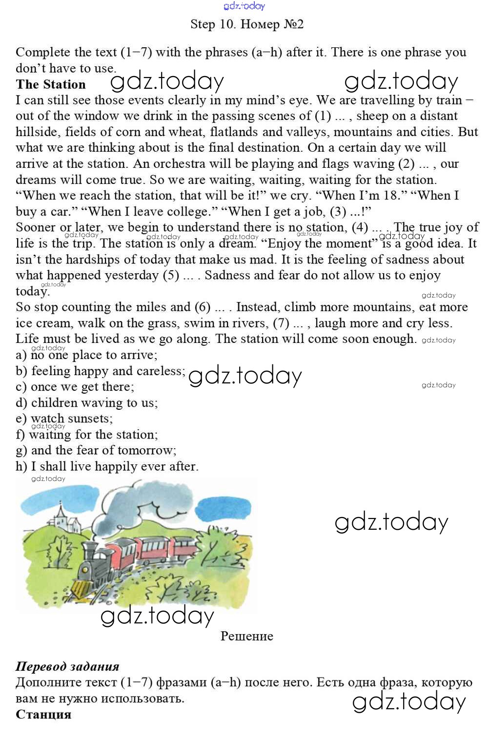 На страницах сайта gdz.today вы найдете учебный и вспомогательный материал, направленный на улучшения знаний школьной программы. ГДЗ - онлайн мир знаний Step 10 Решение к Unit 4. In Harmony with the World 2 Учебнику по Английскому языку для 10 класса Афанасьева, Михеева Базовый уровень Дрофа Rainbow 2016