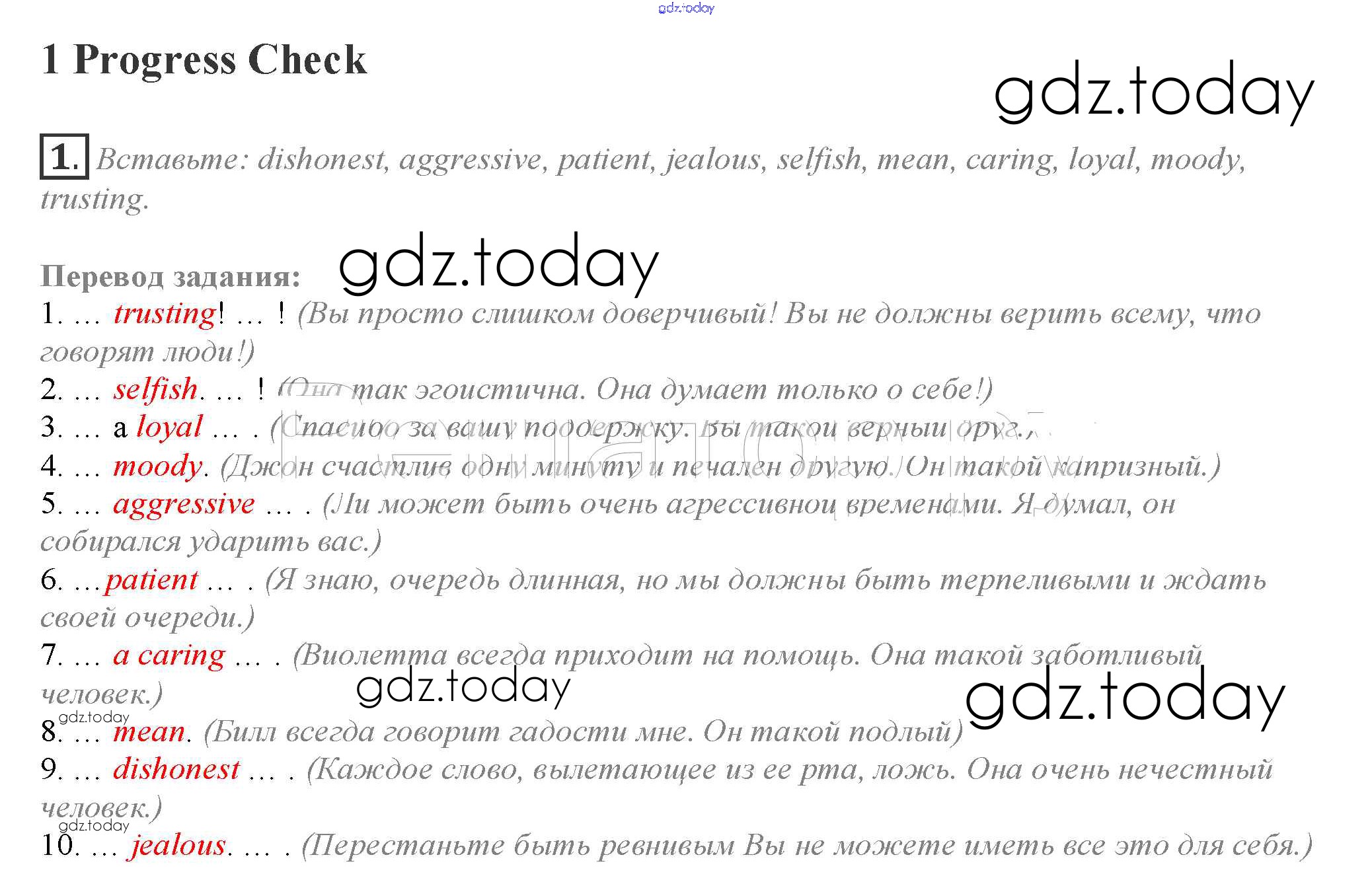 На страницах сайта gdz.today вы найдете учебный и вспомогательный материал, направленный на улучшения знаний школьной программы. ГДЗ - онлайн мир знаний Progress Check Решение к Module 1 1 Учебнику по Английскому языку для 10 класса Афанасьева, Дули Просвещение Spotlight 2015