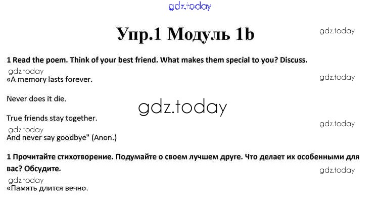 На страницах сайта gdz.today вы найдете учебный и вспомогательный материал, направленный на улучшения знаний школьной программы. ГДЗ - онлайн мир знаний Часть 1b Решение к Module 1 1 Учебнику по Английскому языку для 10 класса Афанасьева, Дули Просвещение Spotlight 2015
