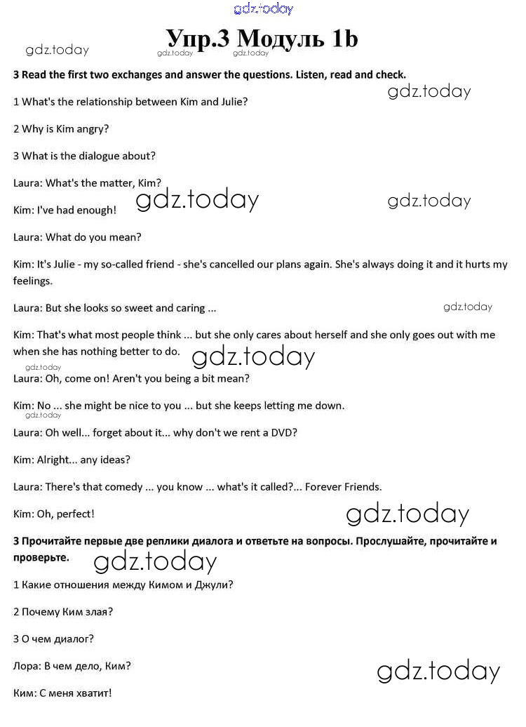 На страницах сайта gdz.today вы найдете учебный и вспомогательный материал, направленный на улучшения знаний школьной программы. ГДЗ - онлайн мир знаний Часть 1b Решение к Module 1 3 Учебнику по Английскому языку для 10 класса Афанасьева, Дули Просвещение Spotlight 2015