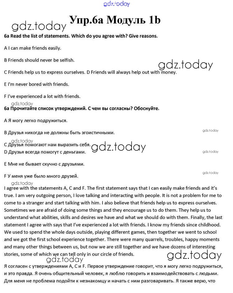 На страницах сайта gdz.today вы найдете учебный и вспомогательный материал, направленный на улучшения знаний школьной программы. ГДЗ - онлайн мир знаний Часть 1b Решение к Module 1 6a Учебнику по Английскому языку для 10 класса Афанасьева, Дули Просвещение Spotlight 2015