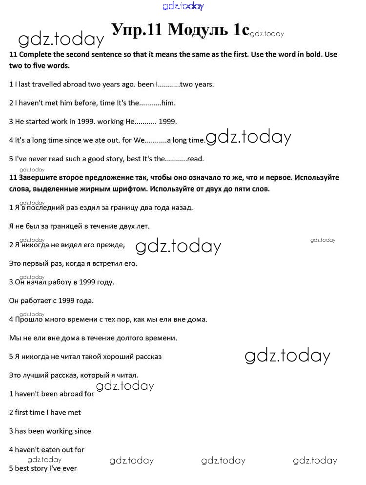 На страницах сайта gdz.today вы найдете учебный и вспомогательный материал, направленный на улучшения знаний школьной программы. ГДЗ - онлайн мир знаний Часть 1c Решение к Module 1 11 Учебнику по Английскому языку для 10 класса Афанасьева, Дули Просвещение Spotlight 2015