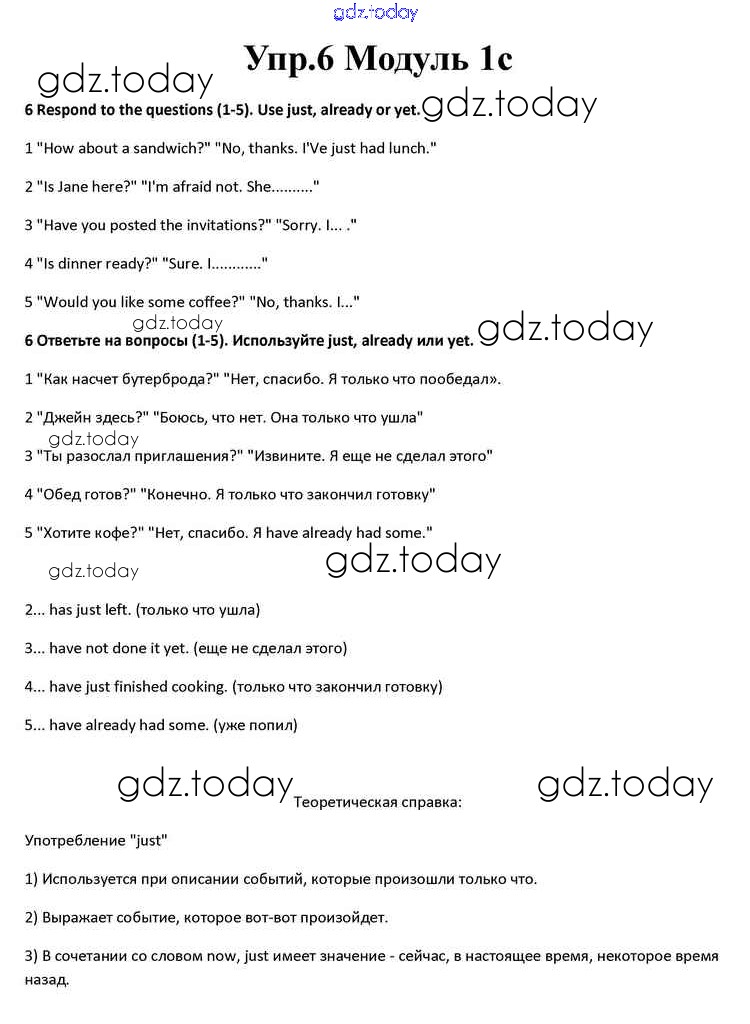 На страницах сайта gdz.today вы найдете учебный и вспомогательный материал, направленный на улучшения знаний школьной программы. ГДЗ - онлайн мир знаний Часть 1c Решение к Module 1 6 Учебнику по Английскому языку для 10 класса Афанасьева, Дули Просвещение Spotlight 2015