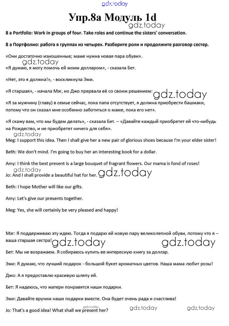 На страницах сайта gdz.today вы найдете учебный и вспомогательный материал, направленный на улучшения знаний школьной программы. ГДЗ - онлайн мир знаний Часть 1d Решение к Module 1 7 Учебнику по Английскому языку для 10 класса Афанасьева, Дули Просвещение Spotlight 2015