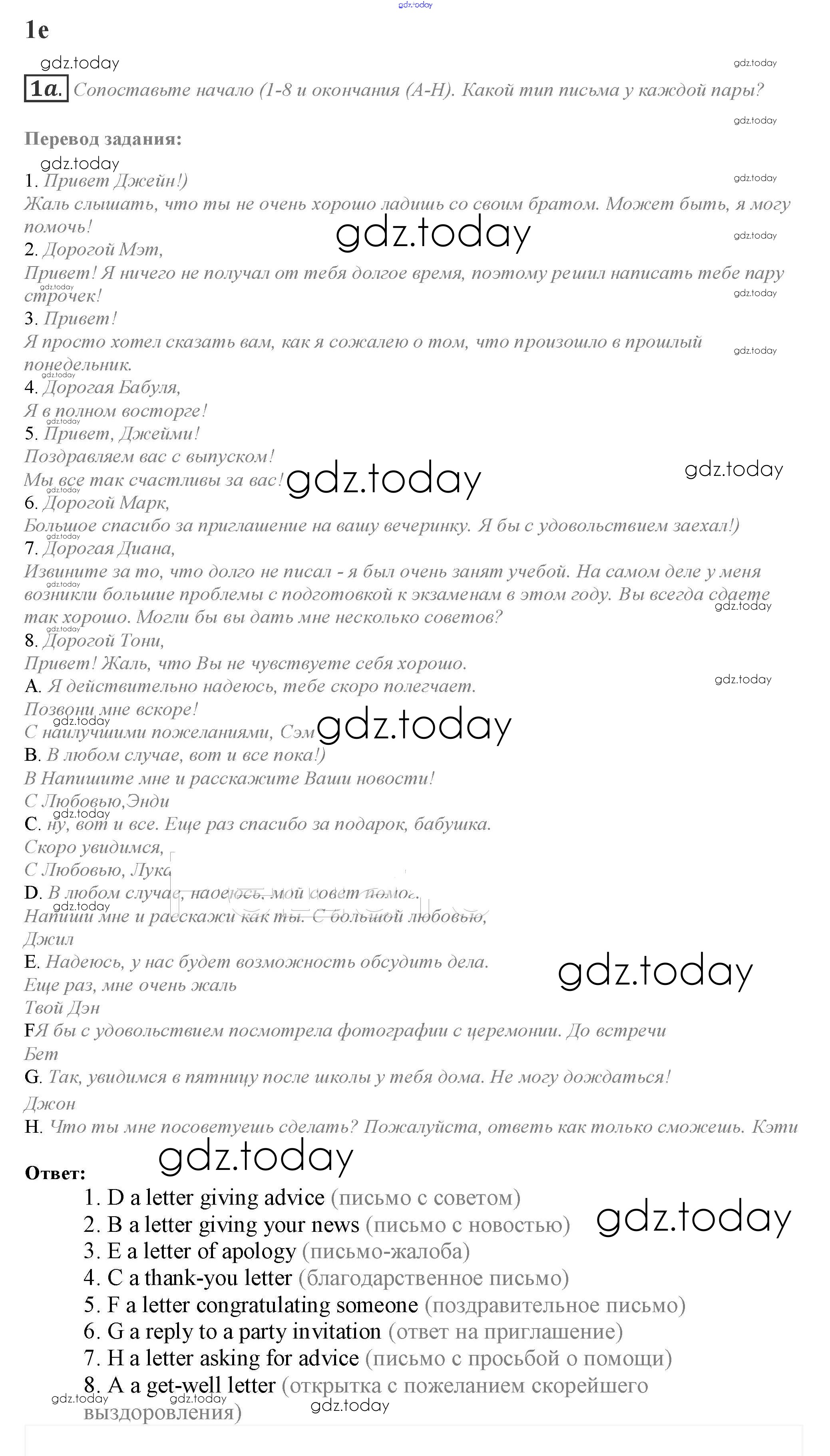 Ответы к Часть 1e Решение к Module 1 1a Учебнику по Английскому языку для 10 класса Афанасьева, Дули Просвещение Spotlight 2015