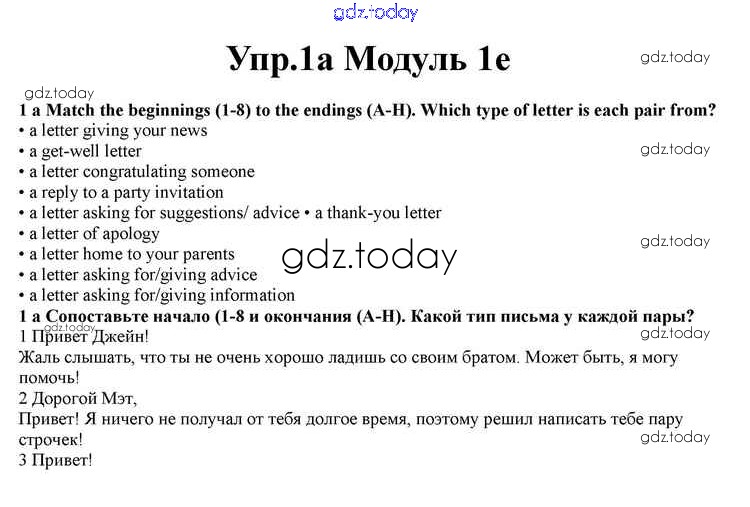 На страницах сайта gdz.today вы найдете учебный и вспомогательный материал, направленный на улучшения знаний школьной программы. ГДЗ - онлайн мир знаний Часть 1e Решение к Module 1 1a Учебнику по Английскому языку для 10 класса Афанасьева, Дули Просвещение Spotlight 2015
