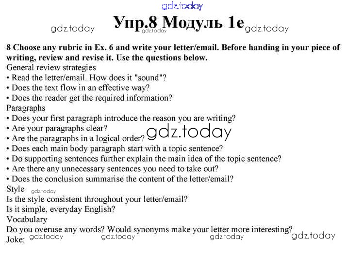На страницах сайта gdz.today вы найдете учебный и вспомогательный материал, направленный на улучшения знаний школьной программы. ГДЗ - онлайн мир знаний Часть 1e Решение к Module 1 7 Учебнику по Английскому языку для 10 класса Афанасьева, Дули Просвещение Spotlight 2015