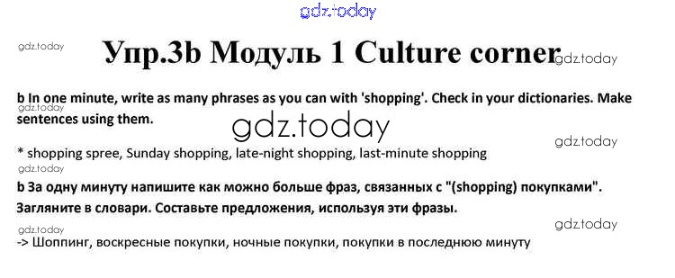 На страницах сайта gdz.today вы найдете учебный и вспомогательный материал, направленный на улучшения знаний школьной программы. ГДЗ - онлайн мир знаний Culture corner Решение к Module 1 3b Учебнику по Английскому языку для 10 класса Афанасьева, Дули Просвещение Spotlight 2015