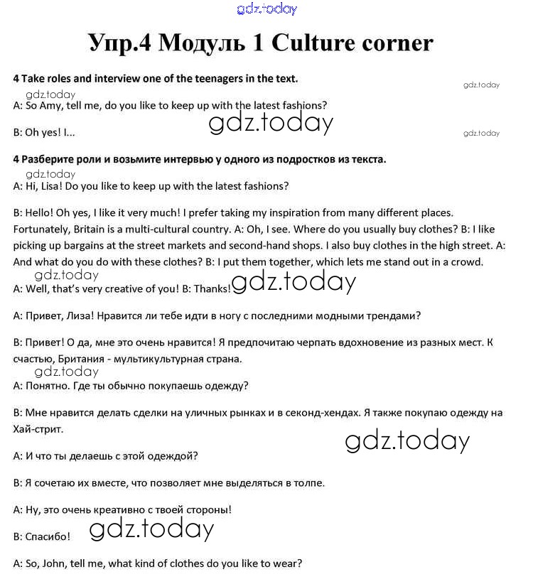На страницах сайта gdz.today вы найдете учебный и вспомогательный материал, направленный на улучшения знаний школьной программы. ГДЗ - онлайн мир знаний Culture corner Решение к Module 1 4 Учебнику по Английскому языку для 10 класса Афанасьева, Дули Просвещение Spotlight 2015