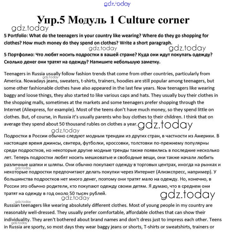 На страницах сайта gdz.today вы найдете учебный и вспомогательный материал, направленный на улучшения знаний школьной программы. ГДЗ - онлайн мир знаний Culture corner Решение к Module 1 5 Учебнику по Английскому языку для 10 класса Афанасьева, Дули Просвещение Spotlight 2015