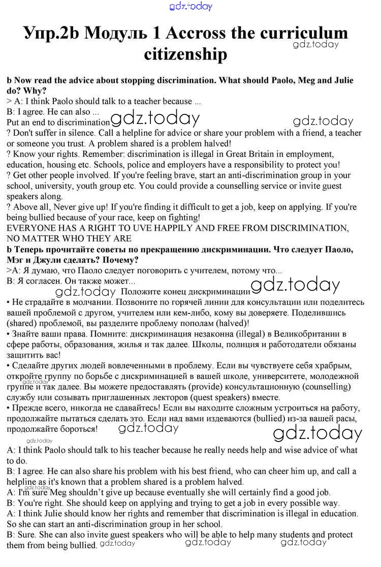 Ответы к Accross the curriculum Citizenship Решение к Module 1 2b Учебнику по Английскому языку для 10 класса Афанасьева, Дули Просвещение Spotlight 2015