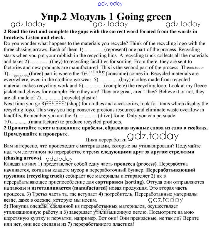 На страницах сайта gdz.today вы найдете учебный и вспомогательный материал, направленный на улучшения знаний школьной программы. ГДЗ - онлайн мир знаний Going green Решение к Module 1 2 Учебнику по Английскому языку для 10 класса Афанасьева, Дули Просвещение Spotlight 2015