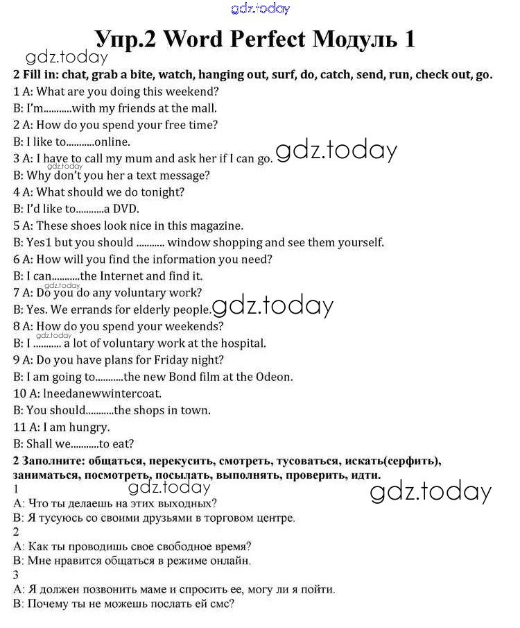 На страницах сайта gdz.today вы найдете учебный и вспомогательный материал, направленный на улучшения знаний школьной программы. ГДЗ - онлайн мир знаний Module 1 Word Perfect 2 Учебнику по Английскому языку для 10 класса Афанасьева, Дули Просвещение Spotlight 2015
