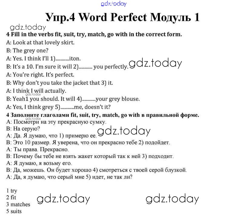 На страницах сайта gdz.today вы найдете учебный и вспомогательный материал, направленный на улучшения знаний школьной программы. ГДЗ - онлайн мир знаний Module 1 Word Perfect 4 Учебнику по Английскому языку для 10 класса Афанасьева, Дули Просвещение Spotlight 2015