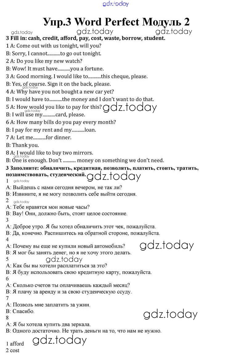 На страницах сайта gdz.today вы найдете учебный и вспомогательный материал, направленный на улучшения знаний школьной программы. ГДЗ - онлайн мир знаний Module 2 Word Perfect 3 Учебнику по Английскому языку для 10 класса Афанасьева, Дули Просвещение Spotlight 2015