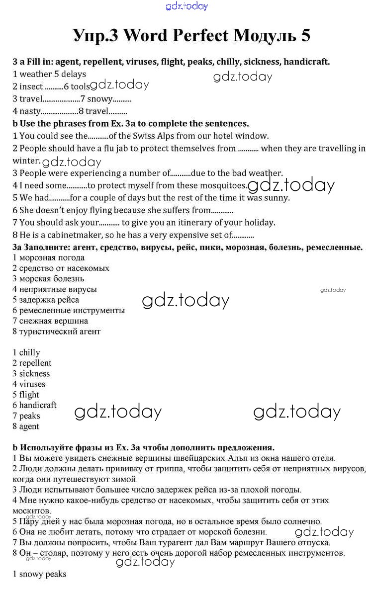 На страницах сайта gdz.today вы найдете учебный и вспомогательный материал, направленный на улучшения знаний школьной программы. ГДЗ - онлайн мир знаний Module 5 Word Perfect 3 Учебнику по Английскому языку для 10 класса Афанасьева, Дули Просвещение Spotlight 2015