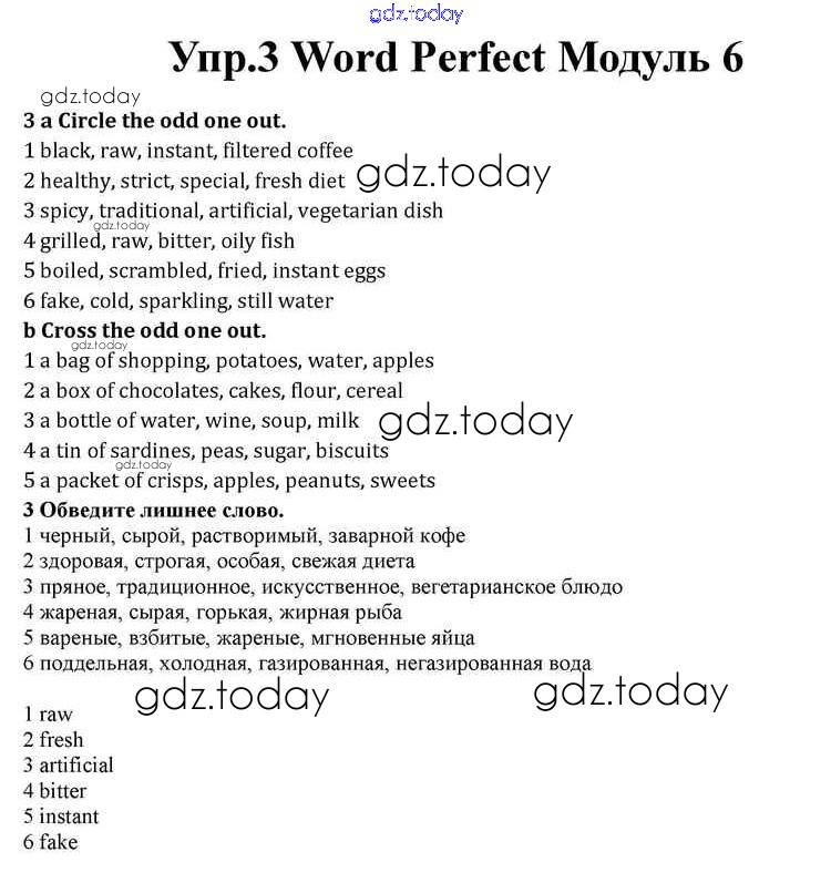 На страницах сайта gdz.today вы найдете учебный и вспомогательный материал, направленный на улучшения знаний школьной программы. ГДЗ - онлайн мир знаний Module 6 Word Perfect 3 Учебнику по Английскому языку для 10 класса Афанасьева, Дули Просвещение Spotlight 2015