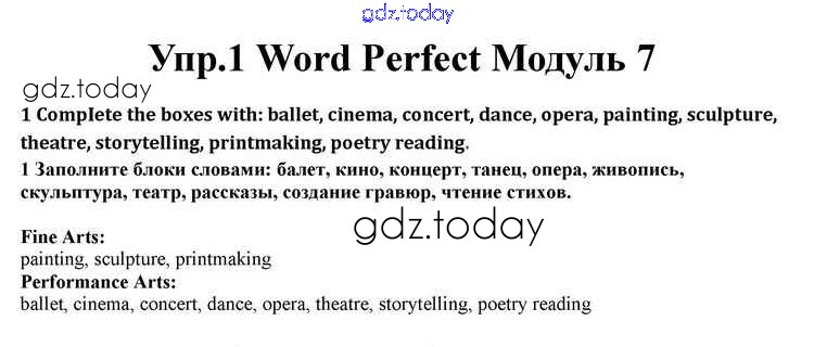 На страницах сайта gdz.today вы найдете учебный и вспомогательный материал, направленный на улучшения знаний школьной программы. ГДЗ - онлайн мир знаний Module 7 Word Perfect 1 Учебнику по Английскому языку для 10 класса Афанасьева, Дули Просвещение Spotlight 2015