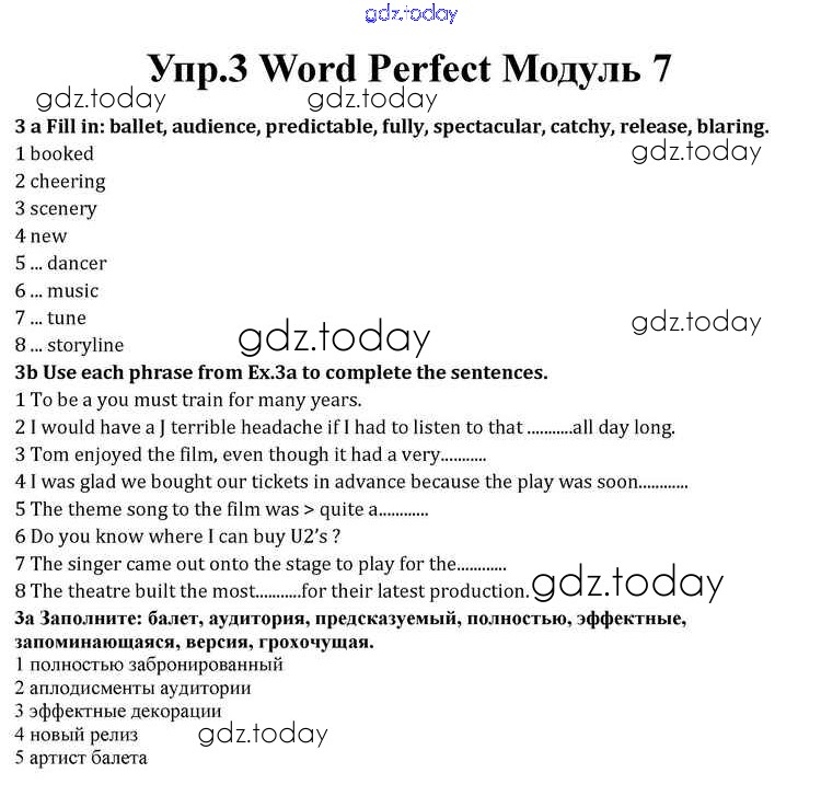 На страницах сайта gdz.today вы найдете учебный и вспомогательный материал, направленный на улучшения знаний школьной программы. ГДЗ - онлайн мир знаний Module 7 Word Perfect 3 Учебнику по Английскому языку для 10 класса Афанасьева, Дули Просвещение Spotlight 2015