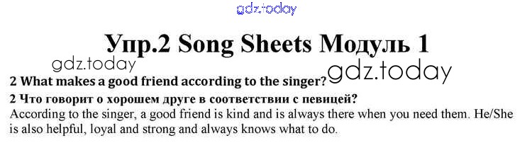 Ответы к Module 1 Song Sheets 2 Учебнику по Английскому языку для 10 класса Афанасьева, Дули Просвещение Spotlight 2015