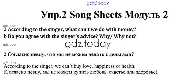 Ответы к Module 2 Song Sheets 2 Учебнику по Английскому языку для 10 класса Афанасьева, Дули Просвещение Spotlight 2015