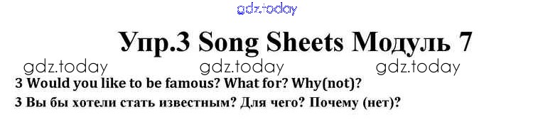 Ответы к Module 7 Song Sheets 3 Учебнику по Английскому языку для 10 класса Афанасьева, Дули Просвещение Spotlight 2015