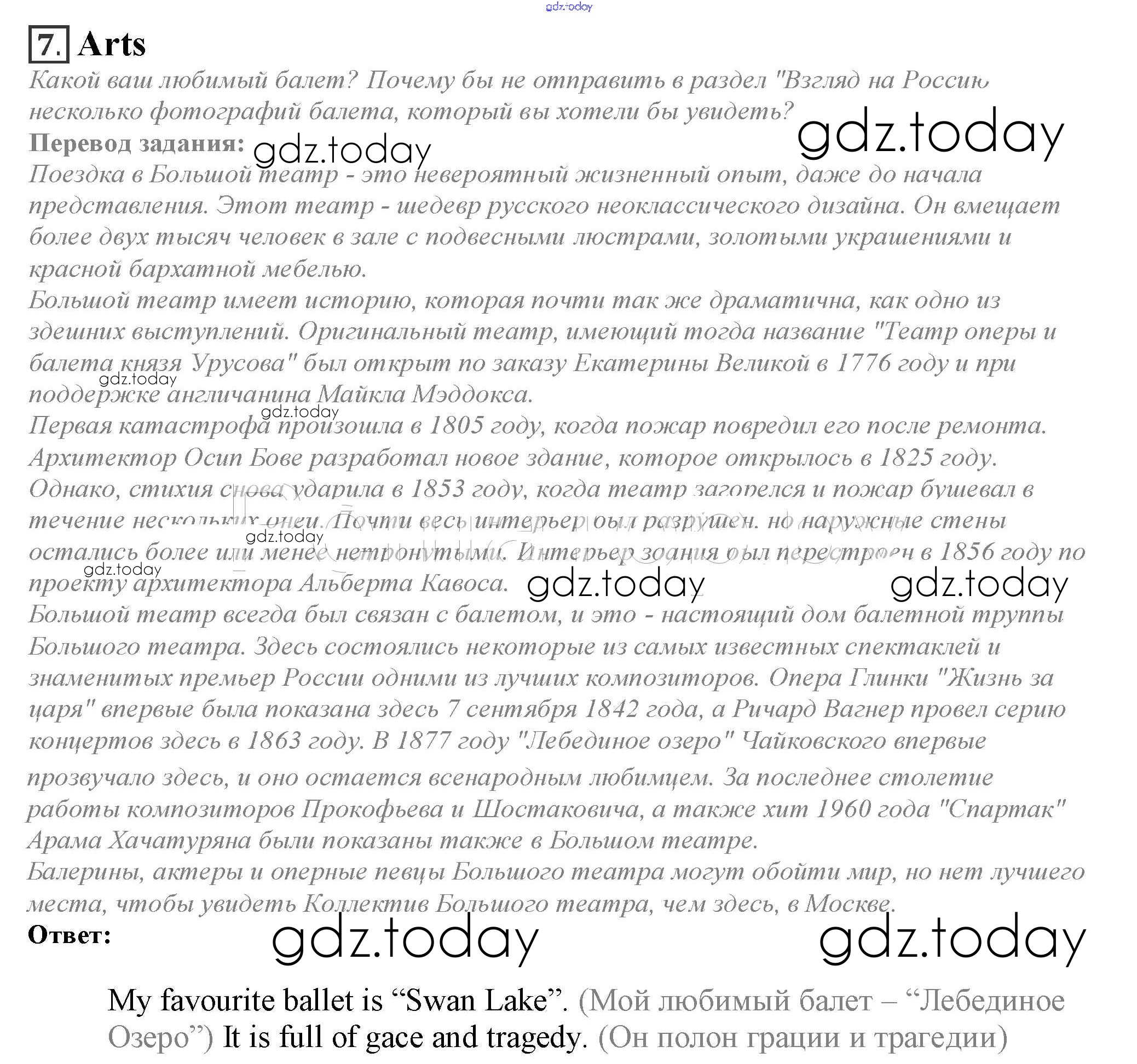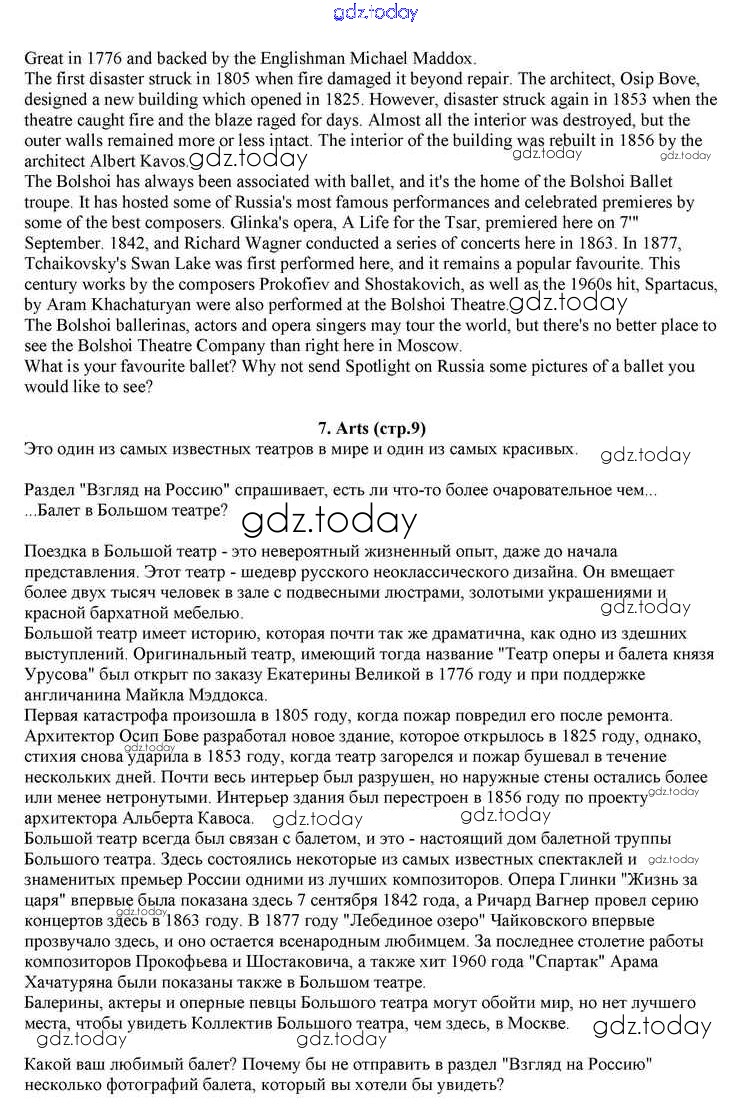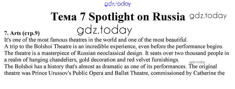 На страницах сайта gdz.today вы найдете учебный и вспомогательный материал, направленный на улучшения знаний школьной программы. ГДЗ - онлайн мир знаний Spotlight on Russia 7. Arts Учебнику по Английскому языку для 10 класса Афанасьева, Дули Просвещение Spotlight 2015