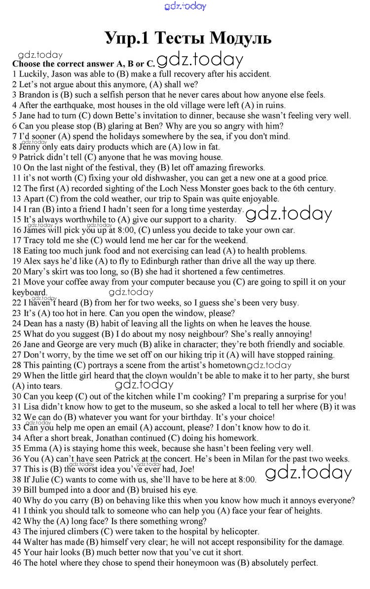 Ответы к Вводный тест Книга с тестами Вводный тест Учебнику по Английскому языку для 10 класса Афанасьева, Дули Просвещение Spotlight 2015