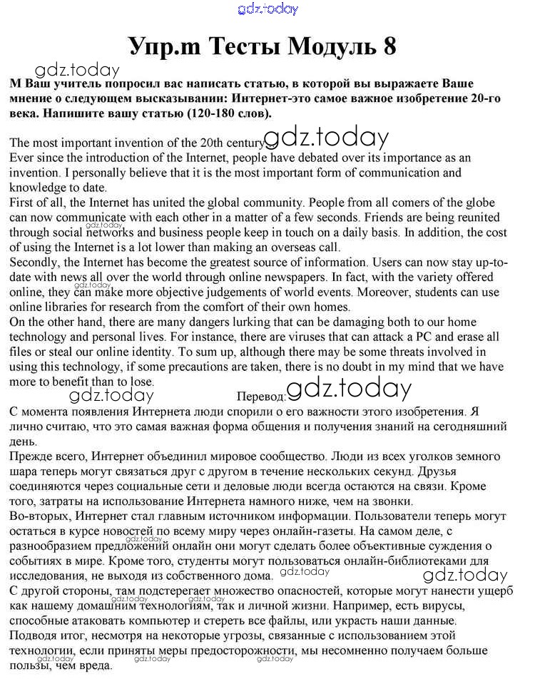 На страницах сайта gdz.today вы найдете учебный и вспомогательный материал, направленный на улучшения знаний школьной программы. ГДЗ - онлайн мир знаний Modul 8 Книга с тестами m Учебнику по Английскому языку для 10 класса Афанасьева, Дули Просвещение Spotlight 2015