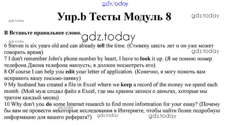 На страницах сайта gdz.today вы найдете учебный и вспомогательный материал, направленный на улучшения знаний школьной программы. ГДЗ - онлайн мир знаний Modul 8 Книга с тестами b Учебнику по Английскому языку для 10 класса Афанасьева, Дули Просвещение Spotlight 2015