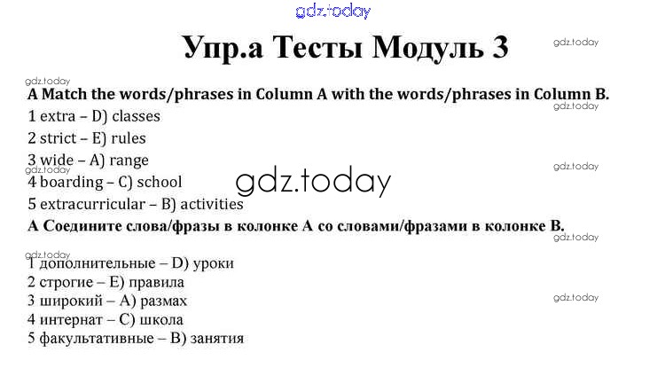На страницах сайта gdz.today вы найдете учебный и вспомогательный материал, направленный на улучшения знаний школьной программы. ГДЗ - онлайн мир знаний Modul 3 Книга с тестами a Учебнику по Английскому языку для 10 класса Афанасьева, Дули Просвещение Spotlight 2015